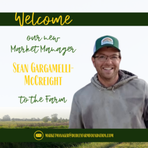 We are extremely excited to announce Sean Gargamelli-McCreight to Dudley Farm as our new Market Manager! Sean is a community vegetable farmer living and working with his family in Guilford. He